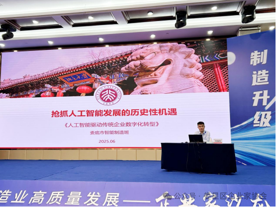 易海明主任以“制造業(yè)如何搶抓人工智能發(fā)展的歷史性機遇”為題,從認識人工智能模型,培育人工智能模型的迫切性,培育人工智能模型的戰(zhàn)略性要素,詳解人工智能模型培育案例和趨勢四個方面系統(tǒng)剖析了人工智能技術(shù)演進脈絡(luò)及其與制造業(yè)融合的核心場景,結(jié)合國內(nèi)外標(biāo)桿案例,為在場企業(yè)家描繪了AI賦能研發(fā)設(shè)計、生產(chǎn)流程優(yōu)化、供應(yīng)鏈管理、質(zhì)量控制和精準(zhǔn)營銷的全鏈條圖景。互動環(huán)節(jié),企業(yè)家結(jié)合自身轉(zhuǎn)型痛點踴躍提問,易主任就技術(shù)選型、投入產(chǎn)出比、安全風(fēng)險等實際問題進行了針對性解答,現(xiàn)場交流氣氛熱烈。