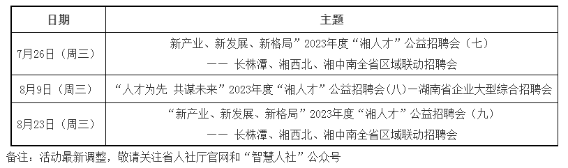 歡迎廣大求職者攜帶簡歷前來求職,更多活動資訊請關(guān)注省人社廳官網(wǎng)及“智慧人社”微信公眾號,或撥打省人力資源服務(wù)中心咨詢電話:0731-85063055。