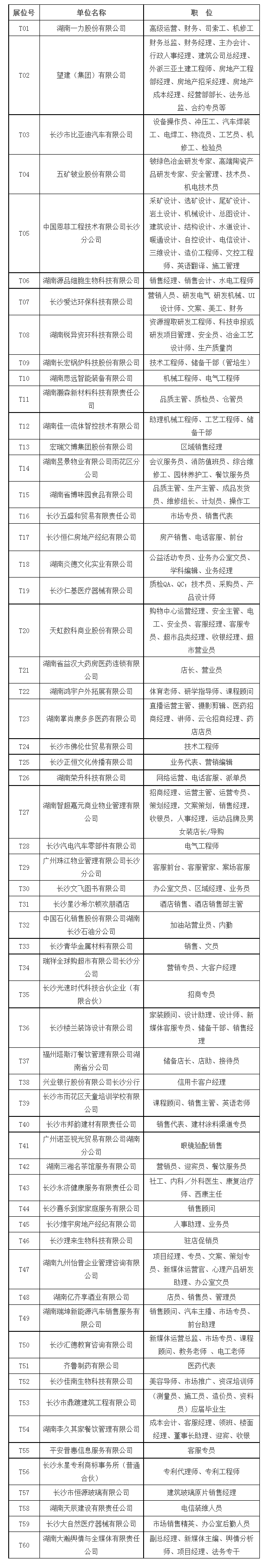每場次活動根據(jù)活動主題和企業(yè)需求情況,收集相關(guān)企業(yè)人才需求,每場篩選60家有招聘需求的企業(yè)參會,企業(yè)可通過撥打聯(lián)系電話(0731-85063729)或登錄線上招聘會專區(qū)預報名,報名成功將有專人對接;求職者如遇相關(guān)問題,可通過撥打聯(lián)系電話(0731-85063906)進行咨詢。