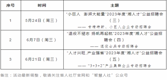 本次“湘人才”公共招聘活動也將同步開設(shè)2023年度“湘人才”公共招聘系列活動線上招聘會專區(qū)(www.hnrcsc.com),方便用人單位和求職者隨時登記招聘求職信息,不向用人單位和求職者收取任何費用。