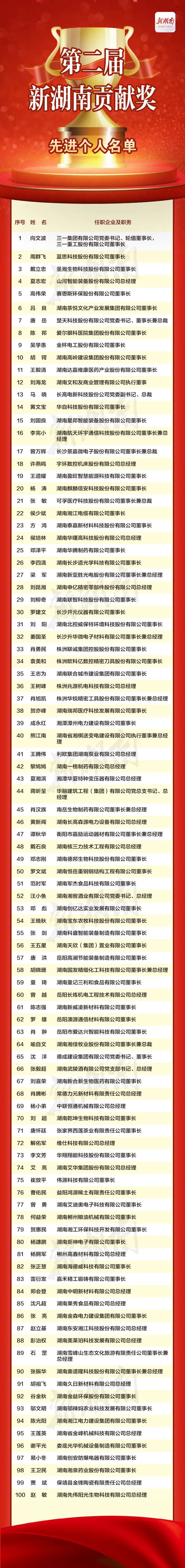 12月25日,湖南省人民政府召開新聞發(fā)布會,發(fā)布《中共湖南省委 湖南省人民政府關于表彰第二屆新湖南貢獻獎先進集體和先進個人的決定》,授予湖南裕能新能源電池材料股份有限公司等79家企業(yè)“新湖南貢獻獎先進集體”稱號,授予向文波等100名同志“新湖南貢獻獎先進個人”稱號,同時還發(fā)布2023三湘民營企業(yè)百強榜單。