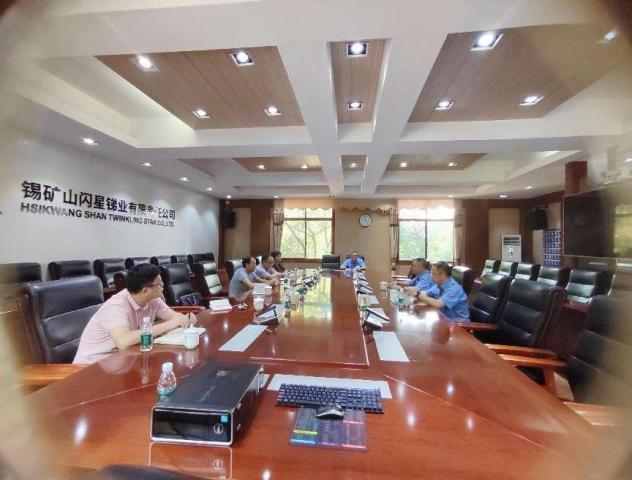 圖3 錫礦山閃星銻業(yè)領(lǐng)導(dǎo)向市企業(yè)“兩會”領(lǐng)導(dǎo)和冷水江市科工信局領(lǐng)導(dǎo)介紹企業(yè)生產(chǎn)經(jīng)營情況